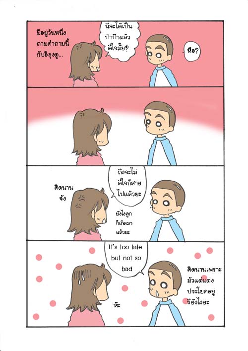 | การ์ตูน Ojichan Watashi&Baby ไฮโซเชียวนะลุง ตอน too late but not so bad แหม ใครที่ติดตาม Ojichan Watashi&Baby มาตั้งแต่ต้น คงจะรู้ว่า แม้สองคนนี้จะงอนกันบ้าง แอบทะเลาะันบ้าง แต่ก็รักกันๆ เนอะ อิจฉาซะจริง วันนี้ ถ้าเพื่อนๆ ได้อ่านตูนไปแว้ว คงคิดว่า ลุงคงอยากให้ประโยคออกมาสมบูรณ์แบบสุดๆ ถึงคิดนานไปหน่อย จนปารมีแอบเคือง แต่ถึงยังไงคู่นี้ก็น่าร้าก เนอะ ![]() | ||