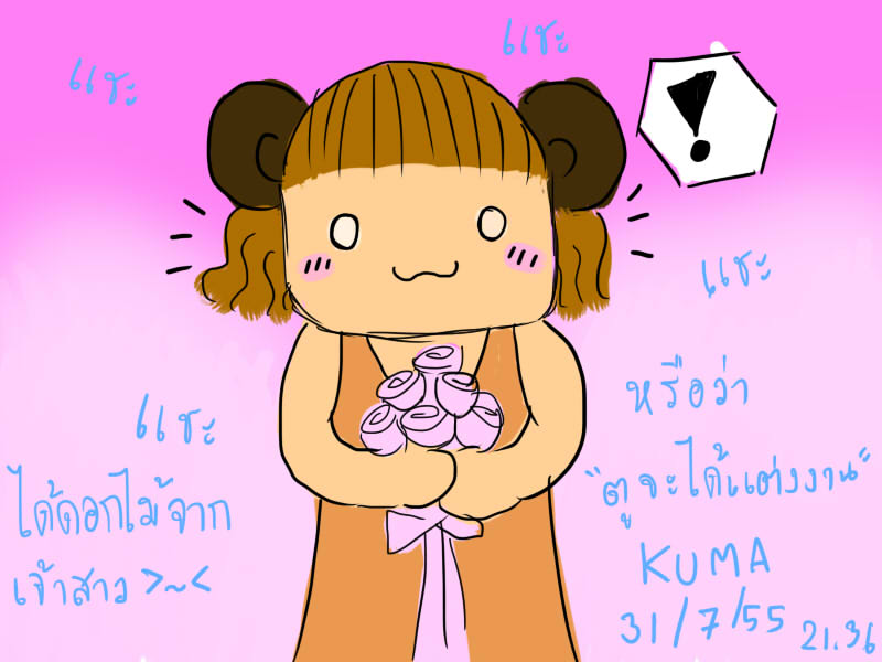 | เมื่อวันอาทิตย์ที่ผ่านมา ปรางไปงานแต่งงานพี่สาวของพี่สะใภ้มา ก็เขาก็เรียกสาวโสดขึ้นไปเล่นรับดอกไม้กัน ก็ไปเล่นหนุกๆ ไปยืนหลังสุดเลย พลัีบ!!! ลงมามือปรางซะงั้น หรือว่า ลางสังเห่า ตูจะได้แต่งงาน โม้ ม่ายน๊า ![]()