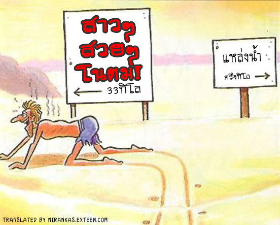 | ดีค้าบทุกท่าน วันนี้เอาการ์ตูนแปลแบบขำๆ ฮาๆ ลามกนิดๆ มาฝากกัน ใครหยุดบ้างเอ่ย วันนี้ ใครไม่ได้ไปทำงานขอแสดงความยินดีด้วย ส่วนคนที่ไปทำงานก็ขอให้สู้ๆ นะค้าบ ตูนวันนี้ ดูสิ อยู่กลางทะเลทรายขนาดนั้นยังอุตส่าห์จะไป ดูหญิง หรือ ไปลดล้างสต๊อก แล้วตังค์ยังมีอยู่เหรอ อิอิ ![]() ![]() | ||