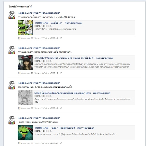 | Administrator | ออกมาแล้วครับกับโปรแกรมการโปรโมตการ์ตูนให้กับเพื่อนๆ วันนี้มีการ์ตูนเข้ามาให้ได้อ่านกันเสียด้วย แต่ส่วนมากก็เป็นรูปการ์ตูนที่ส่งกันเข้ามาอย่างล้นหลาม ลองมาดูกันดีกว่าครับว่าใครลงเวลาไหนไว้บ้าง แล้วอย่าลืมแชร์ผลงานตัวเองจากแฟนเพจหรอยไปอวดเพื่อนๆกันละ อิอิ สำหรับยอดคน Like แฟนเพจหรอยกูอยู่ที่ 11,771 เมื่อวาน 11,754 โดนหลอกเข้ามาอีก 17 คนก๊าบ https://www.facebook.com/roigoocomic