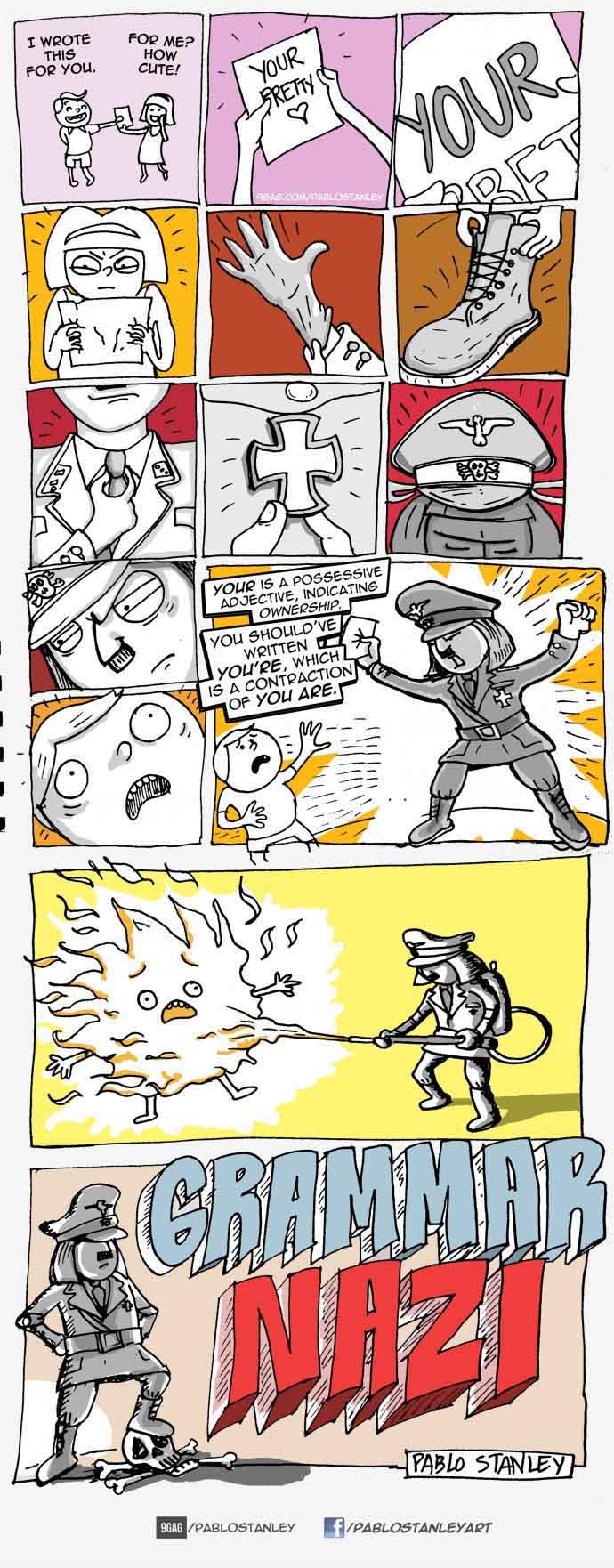 นอกเหนือจากนั้น ยังมีตัวละครฮาๆ ตัวอื่นอีกเช่น "Grammar Nazi" ฮีโร่อีกตัวของ Pablo Stanley Grammar Nazi นั้นไม่ฝักไฝ่ฝ่ายใด แต่หากใครสะกดอะไรผิดเพียงนิดเดียวเท่านั้นแหละ! เขาจะตรงเข้าเล่นงานอย่างโหดร้าย โดยไม่ใส่ใจถึงความจำเป็นหรือเนื้อหาที่ผู้พูดต้องการสื่อเลย... เอ้าเด็ก ๆ พูดพร้อม ๆ กัน "Thank you Grammar Nazi!" ลองอ่านดูครับสำหรับ Grammar Nazi อยู่ตอนท้ายสุดของการ์ตูนที่นำมาให้อ่านคร้าบ