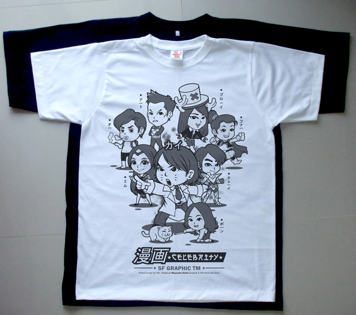 | หัวหน้าแผนกบอกว่าให้ผมออกแบบเสื้อทีมแผนกกราฟิก ให้คอนเซปท์มาว่า Manga วาดทุกคนในแผนกเป็นตัวการ์ตูนญี่ปุ่น มาลองทายซิว่าผมวาดตัวการ์ตูนชื่ออะไร จากเรื่องอะไรบ้าง? ชื่อญี่ปุ่นเป็นชื่อคนในแผนกที่เอามาวาดครับ ให้น้องซาโอริแปลให้ ใครเก่งญี่ปุ่นคงอ่านออก | ||