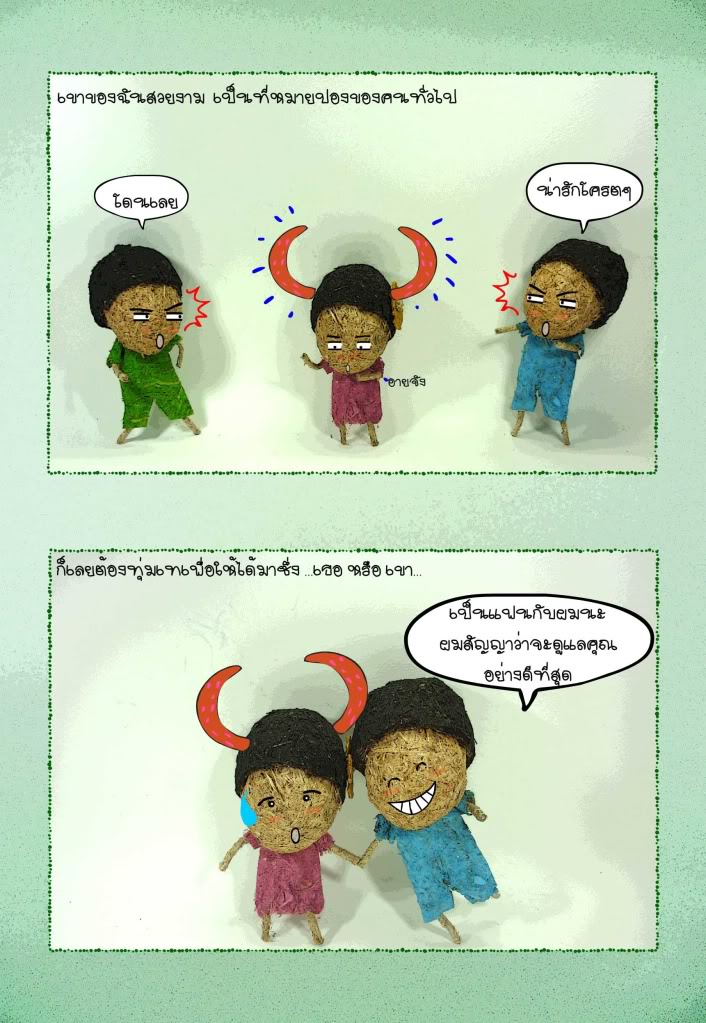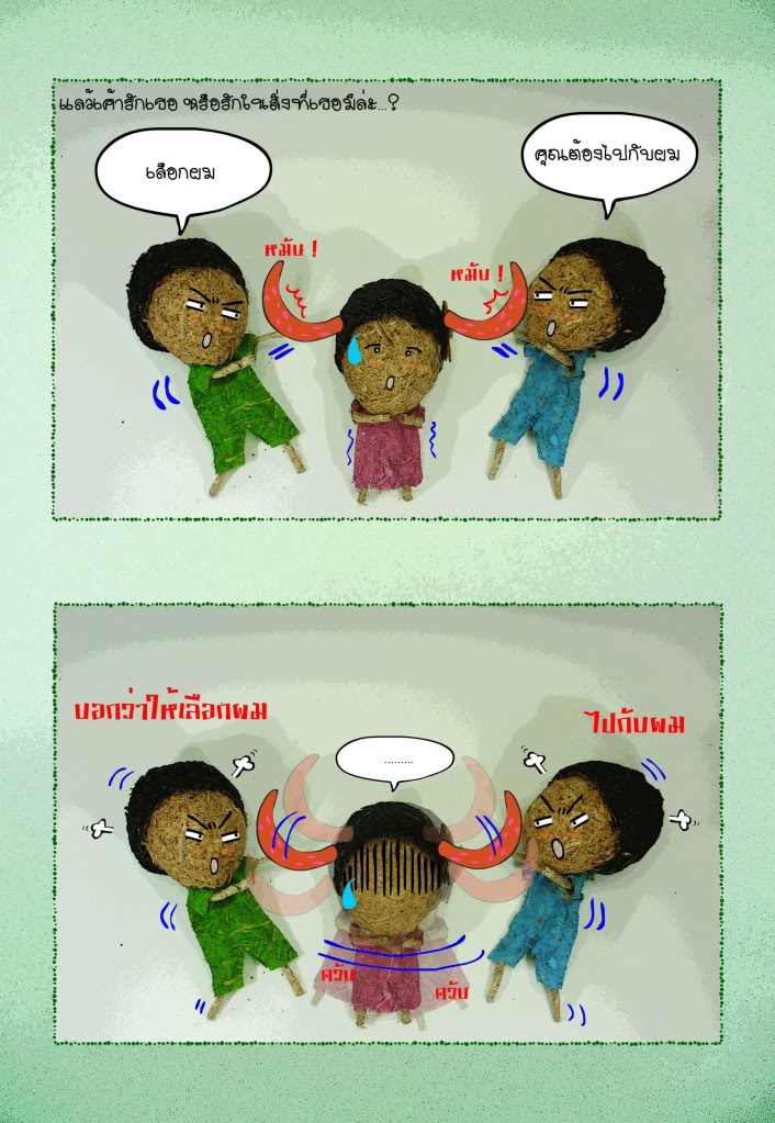 | วันนี้ ดีก้า เรื่องเล่าจากตุ๊กตาดี๊ดี นำเสนอชื่อตอนที่สุดแสนจะตื่นเต้น เธอ เขา และรักของเรา สอง สาม คน แรกๆ ที่เค้าเห็นชื่อตอนก็สนใจ เลยอ่านๆๆ ไป แหม..พออ่านจบ สรุปได้สุดยอดมากๆ น่านับถือจริงๆ กับคนที่เจอเหตุกาณ์รักแบบนี้ แล้วลงเอยด้วยดี แม้ไม่ได้เป็นคนรักยังเป็นเพื่อนกันได้ จริงไหม ปรบมือๆๆๆ (แต่ก่อนจะเป็นเพื่อนคงต้องทำใจหน่อยเนอะ) ความงามของการ์ตูน 8/10 ความสนุกของการ์ตูน 9/10 ความฮาของการ์ตูน 9/10 ![]() ![]() ![]() ![]() ![]() | ||
