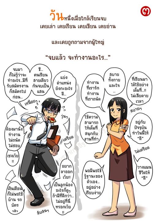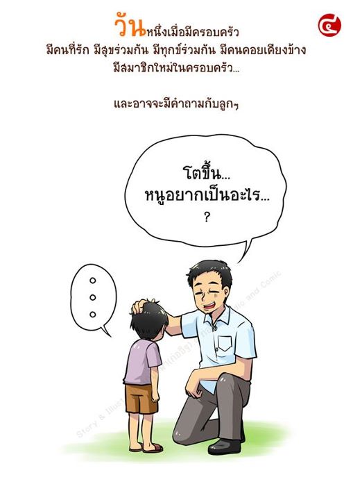 | อ่านตูนนี้แล้วคิดถึงตัวเองตอนเป็นเด็ก มักจะถูกถามว่า โตขึ้นอยากเป็นอะไร เพื่อนๆ ตอบว่าอยากเป็นอะไรกันบ้าง พอโตขึ้นมาหลังจากเรียนจบก็ถูกถามอีกว่า อยากทำงานอะไร เป็นคำถามของแต่ละช่วงวัยจริงๆ พอมีลูกก็ถามลูกว่าอยากเป็นอะไร คำถามจะเป็นวัฏจักรวนเวียนไปอย่างนี้ไม่สิ้นสุด แล้วเพื่อนๆ ลองนึกย้อนกลับไปวัยเด็กไหมว่า เคยคิดอยากเป็นอะไร แล้วตอนนี้ได้เป็นดังที่ฝันไว้ไหม ![]() ![]() ![]() ![]() | ||